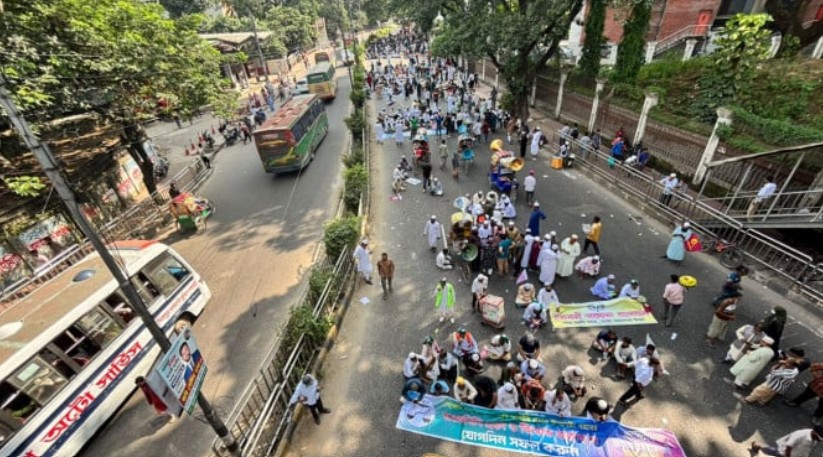 নির্বাচনের আগে গণভোটের দাবিতে হাইকোর্ট এলাকায় রাস্তার একপাশে বসে পড়েছে জামায়াতসহ ৮ দল; যানজট