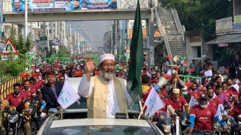 শোভাযাত্রায় অংশগ্রহণকারীরা সংগঠনের পক্ষে স্লোগান দেন ও দাঁড়িপাল্লার পক্ষে ভোট চান।