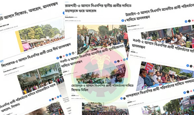 প্রার্থী ঘোষণার পর থেকেই বিএনপির মনোনয়নবঞ্চিতদের ক্ষোভ-বিক্ষোভ, কর্মীদের মধ্যে বিভাজন এবং সামাজিক যোগাযোগমাধ্যমে প্রতিক্রিয়া অব্যাহত রয়েছে। ৪০টির বেশি আসনে প্রার্থিতা নিয়ে অসন্তোষ চরমে পৌঁছেছে। এর জেরে বিক্ষোভ, মিছিল, সড়ক অবরোধের মতো কর্মসূচি চলছে। গতকাল শনিবারও অন্তত আটটি আসনে বিক্ষোভ হয়েছে।